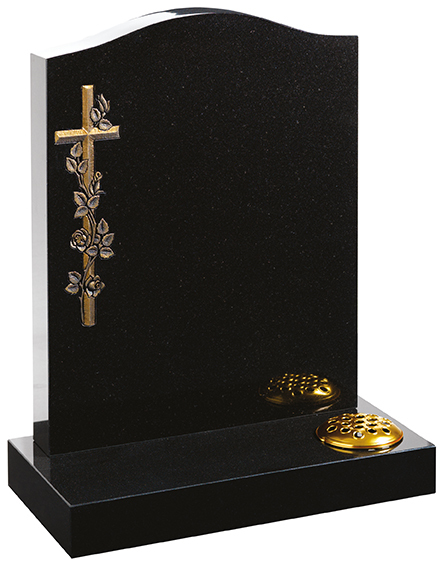 A beautiful posy design and gilded line adds something special to the elegant heart shaped Black granite memorial.