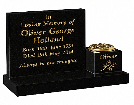 Lettering: The first 100 letters are free. Each letter/character beyond that (cut & gold leaf or painted black/silver/white) costs £1.75 on a new memorial in Granite, Marble, Portland Stone or Nabresina. If you wish to add lettering to an existing memorial this needs to be quoted for on a case by case basis. For more information, please read our Useful Guide on the cost of adding an inscription to a headstone.