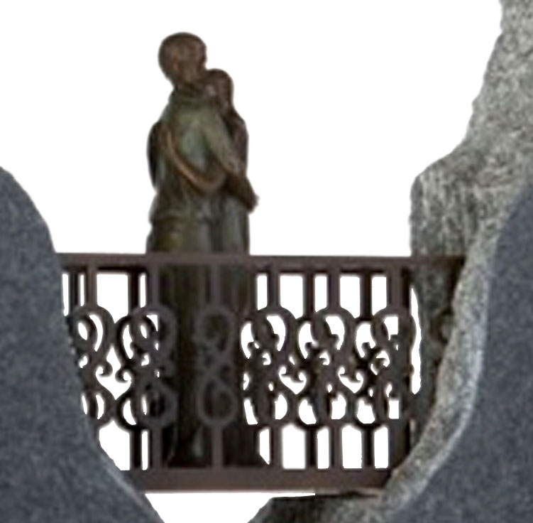 The ‘Crossing’ memorial shows a couple embracing on a bridge between two worlds