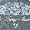 The deep CNC carved rose design is the highlight of this memorial. Shown in Avon Grey Granite.
