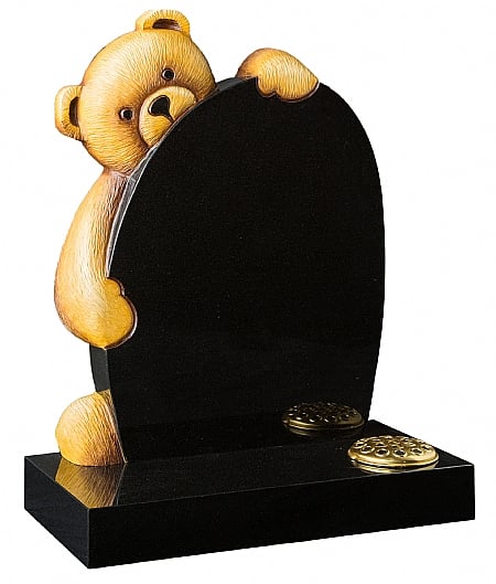 The fully carved teddy headstone can be replaced with other characters as shown in the inset
